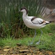 Pied Avocet landing in pond in Waterscapes Aviary (Slimbridge trip)