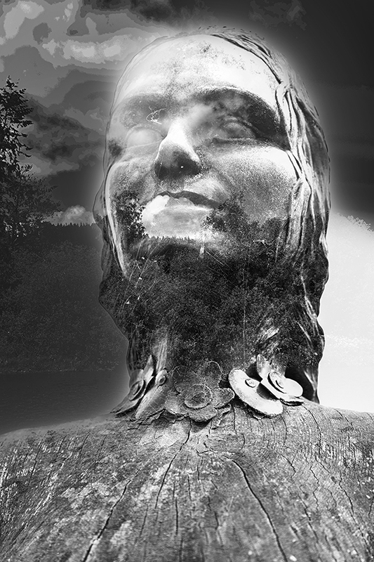 Sabrina Statue, Llanidloes (double exposure)