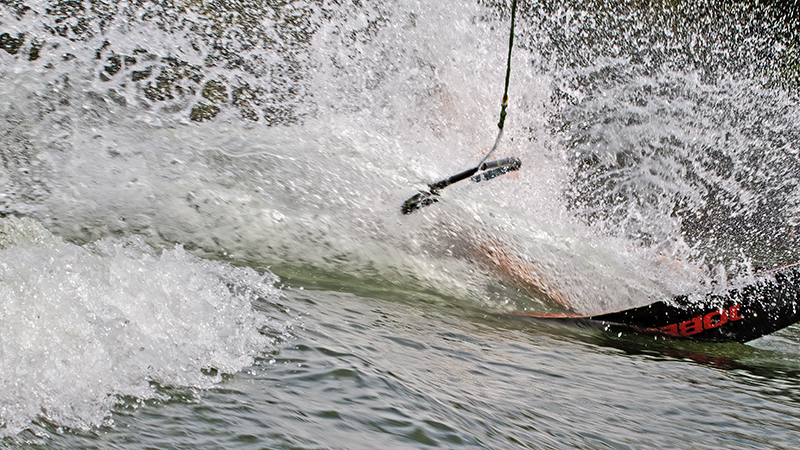 Wakeboarding at the weekend. I was photographing from the boat and this was when one of my grandaughters came off. It works quite well in mono I think, but I rather like the red bits in this version.