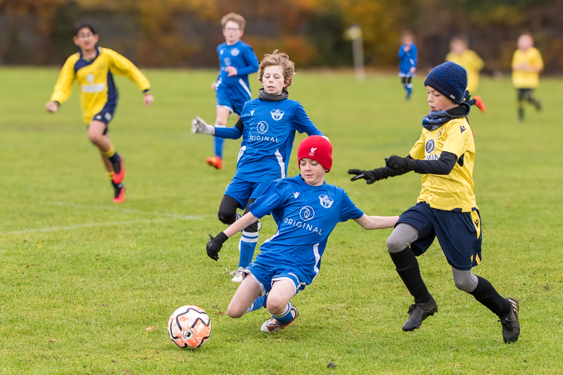 Good action shot. I am not absolutely sure the LHS player needs to go but worth trying and makinga comparison. I bet the lad with the red hat woud be well pleased with this picture and could claim he went on to score (even if he did not).