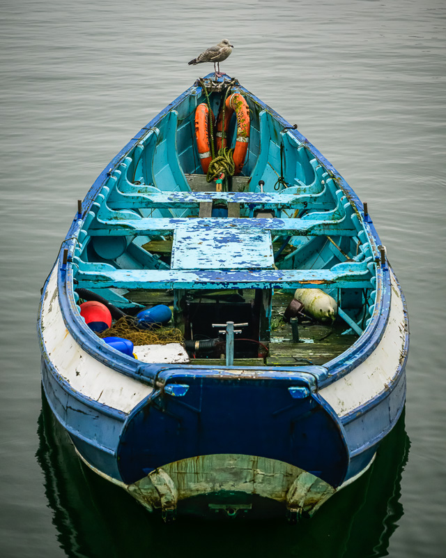 Wandering around a very grey wet day in Brixham last week and this image seemed to be the only source of any colour, I was intially taken by the shape of this blue boat against the grey water then noticed the young gull perched at the front. I've cloned out a few of the distracting reflections in the water and the mooring rope to the rear to emphasis the boat more and also toned down the orange of the lifebuoys along with a slight vignette to draw the viewer in.