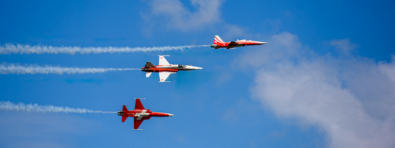 This is my rework, as suggested by David A, deleting two of of the original five Swiss Air Force Display Team planes rehearsing taken the day before this year's Fairford display. I do agree that it improves the image. The vapour trails took some “cut and pasting” to remove overlaping.