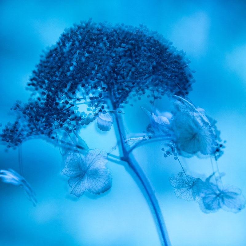 Very blue... to good effect. It looks like it was made with some sort of print making technique, I'm thinking perhaps cyanotype? Maybe this is what you were going for. The bit of blur reminds us that plants do actually move quite a lot. Bold statement... works for me.